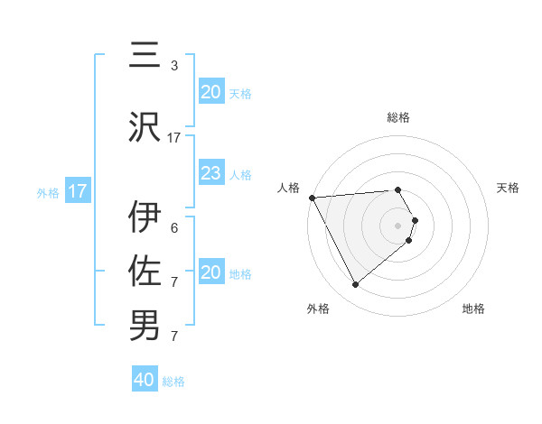 三沢 伊佐男さんを姓名の画数から五運を鑑定