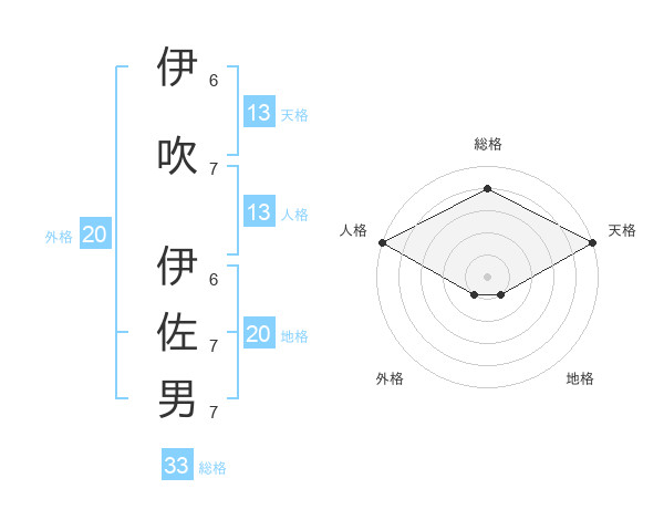 伊吹 伊佐男さんを姓名の画数から五運を鑑定