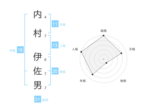 内村 伊佐男さんを姓名の画数から五運を鑑定