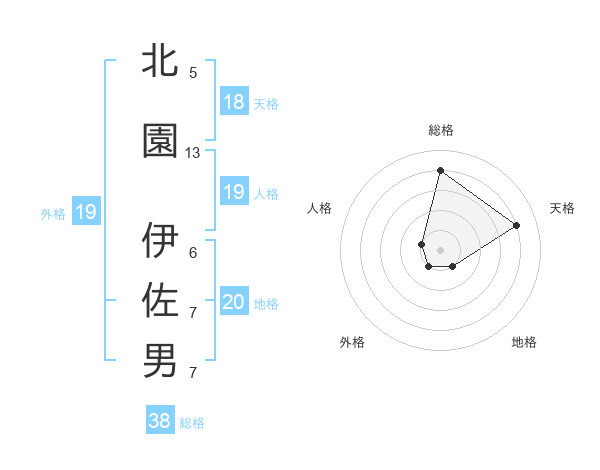 北園 伊佐男さんを姓名の画数から五運を鑑定
