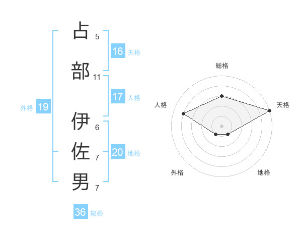 占部 伊佐男さんの天格は16画の5点!