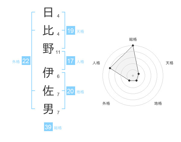 日比野 伊佐男さんの総格は39画の5点!