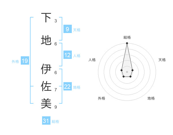 下地 伊佐美さんの総格は31画の5点!
