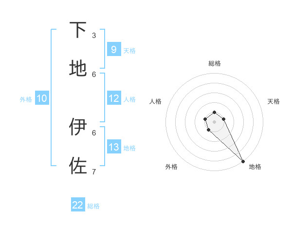 下地 伊佐さんの総格は22画の1点!