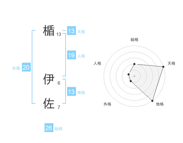 楯 伊佐さんを姓名の画数から五運を鑑定