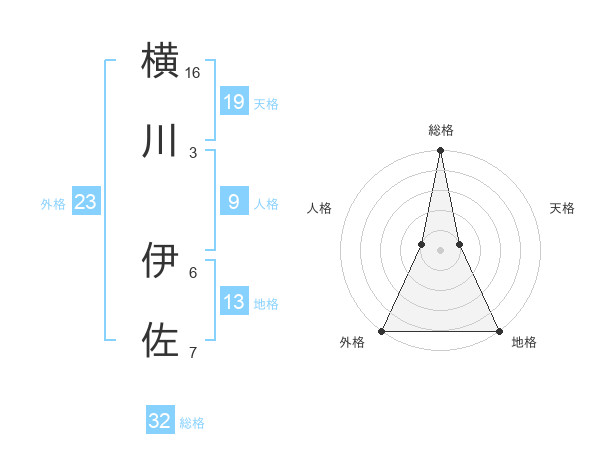 横川 伊佐さんを姓名の画数から五運を鑑定
