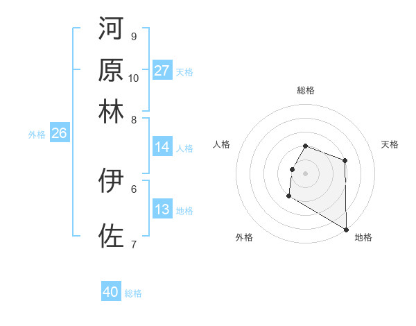 河原林 伊佐さんを姓名の画数から五運を鑑定