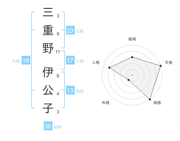 三重野 伊公子さんを姓名の画数から五運を鑑定