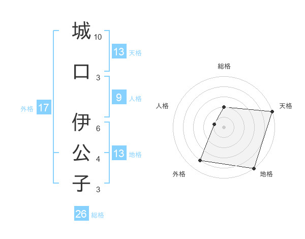 城口 伊公子さんの天格は13画の5点!