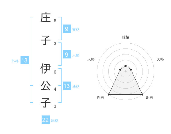 庄子 伊公子さんを姓名の画数から五運を鑑定