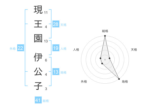 現王園 伊公子さんを姓名の画数から五運を鑑定