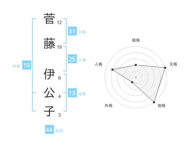 菅藤 伊公子さんを姓名の画数から五運を鑑定