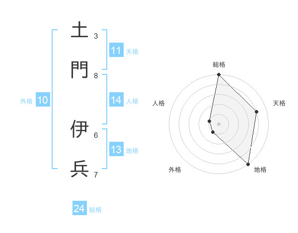 土門 伊兵さんを姓名の画数から五運を鑑定