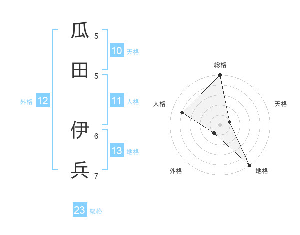 瓜田 伊兵さんを姓名の画数から五運を鑑定