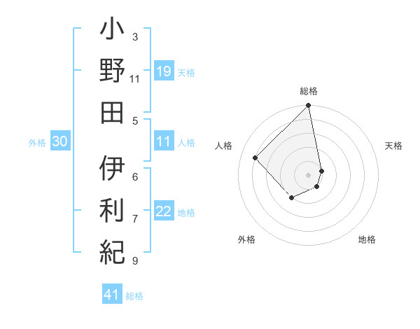 小野田 伊利紀さんを姓名の画数から五運を鑑定