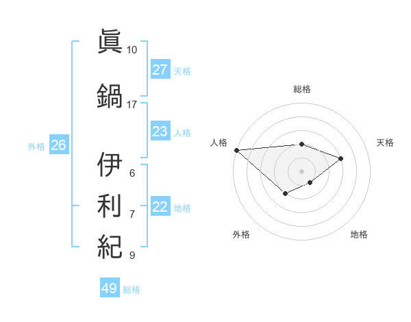 眞鍋 伊利紀さんの総格は49画の2点!