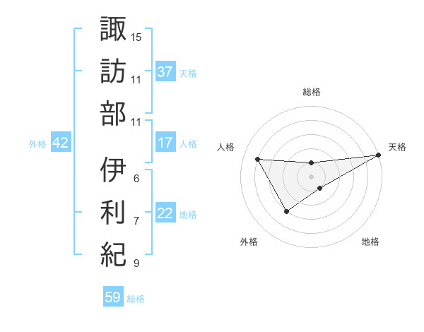 諏訪部 伊利紀さんを姓名の画数から五運を鑑定