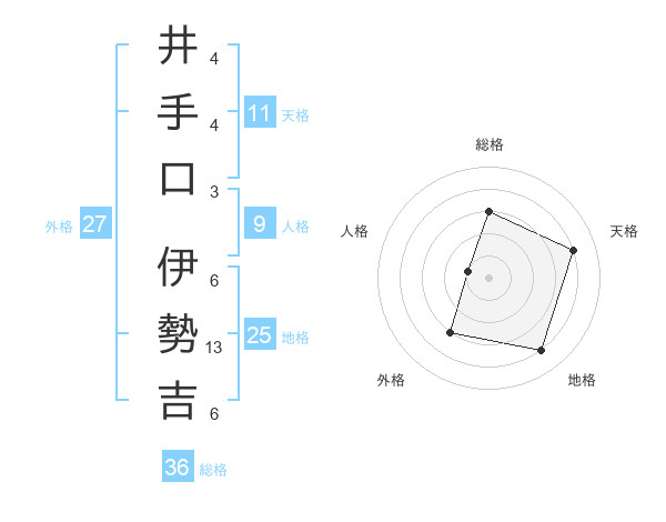井手口 伊勢吉さんを姓名の画数から五運を鑑定