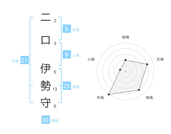 二口 伊勢守さんを姓名の画数から五運を鑑定