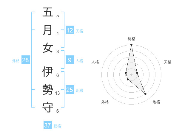 五月女 伊勢守さんを姓名の画数から五運を鑑定
