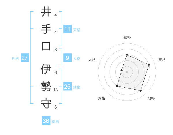 井手口 伊勢守さんを姓名の画数から五運を鑑定