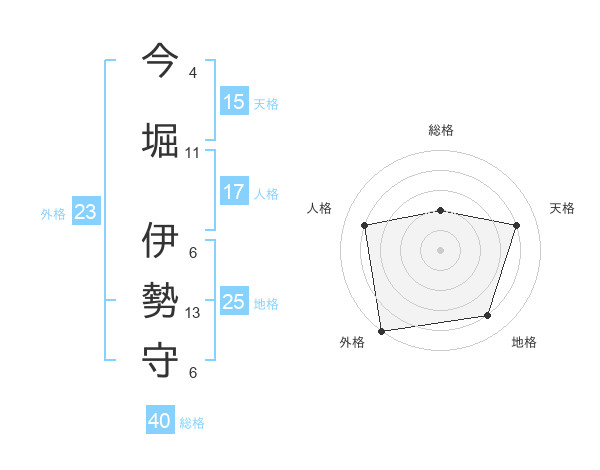 今堀 伊勢守さんの地格は25画の4点!