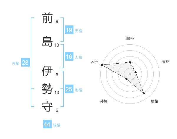 前島 伊勢守さんの天格は19画の1点!