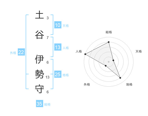 土谷 伊勢守さんの総格は35画の4点!