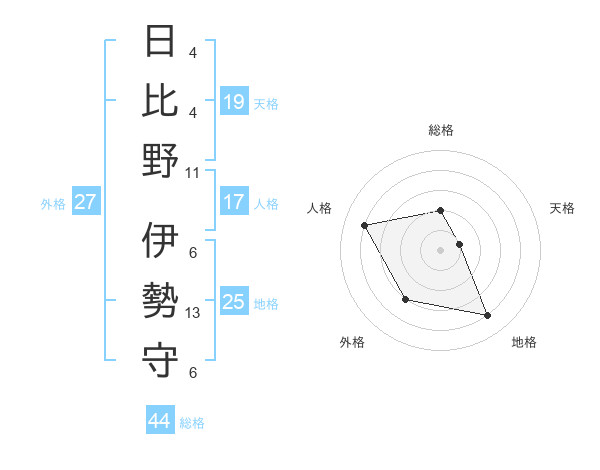 日比野 伊勢守さんを姓名の画数から五運を鑑定