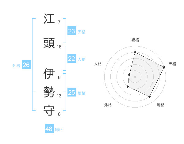 江頭 伊勢守さんを姓名の画数から五運を鑑定