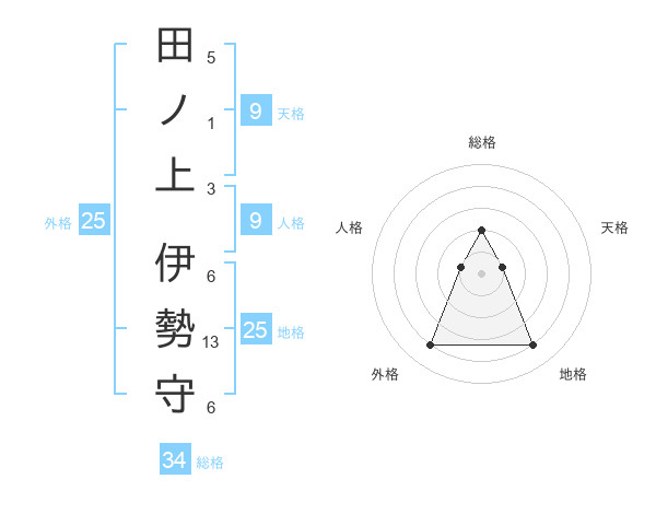 田ノ上 伊勢守さんの地格は25画の4点!