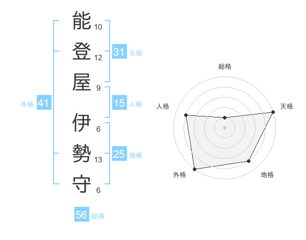 能登屋 伊勢守さんを姓名の画数から五運を鑑定
