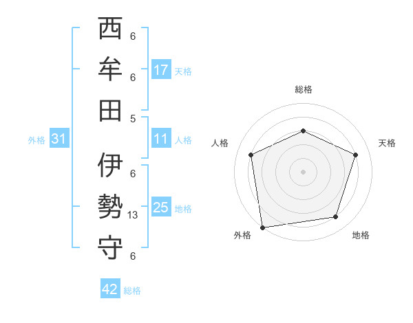 西牟田 伊勢守さんを姓名の画数から五運を鑑定
