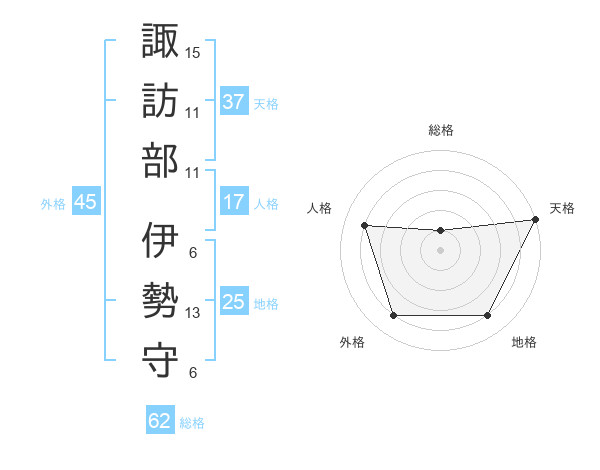 諏訪部 伊勢守さんを姓名の画数から五運を鑑定