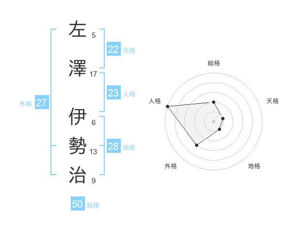 左澤 伊勢治さんを姓名の画数から五運を鑑定