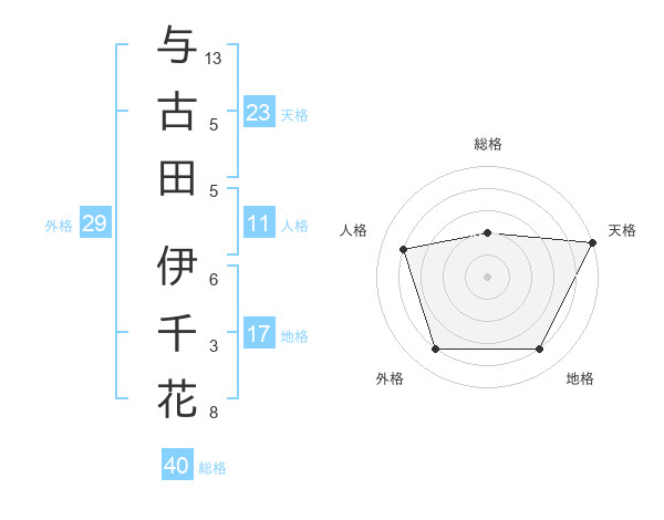 与古田 伊千花さんの天格は23画の5点!
