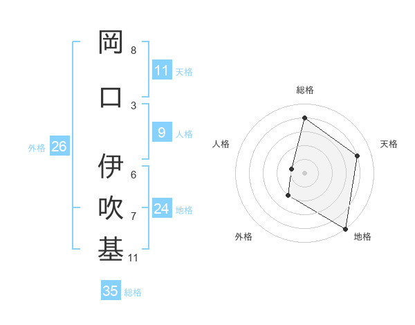 岡口 伊吹基さんの総格は35画の4点!