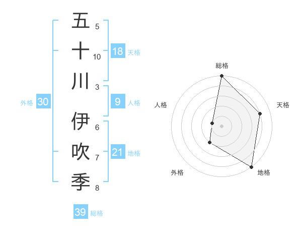 五十川 伊吹季さんを姓名の画数から五運を鑑定