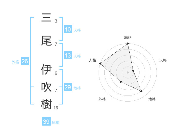三尾 伊吹樹さんの総格は39画の5点!