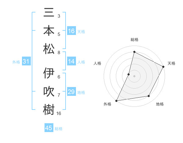 三本松 伊吹樹さんを姓名の画数から五運を鑑定