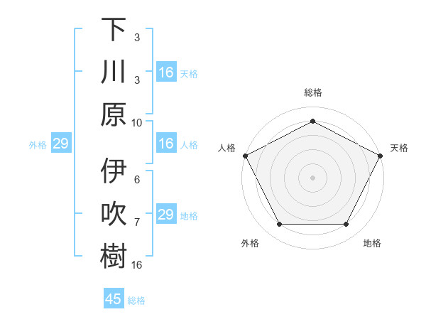 下川原 伊吹樹さんを姓名の画数から五運を鑑定