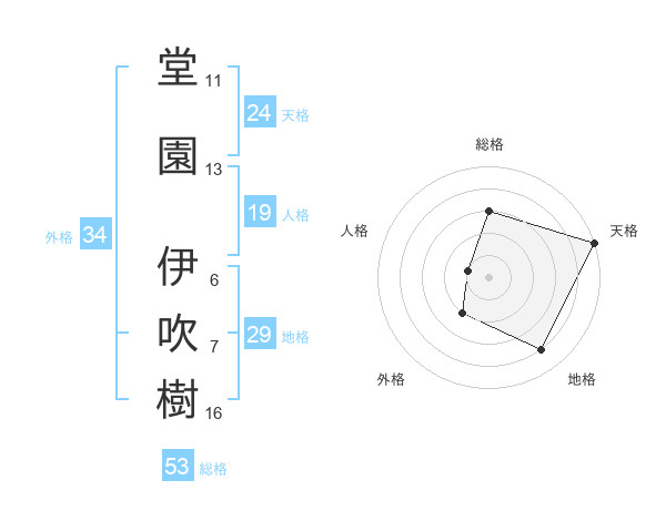 堂園 伊吹樹さんの総格は53画の3点!