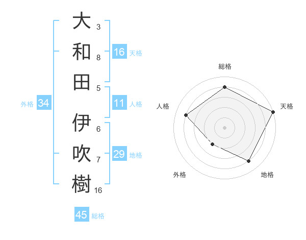 大和田 伊吹樹さんを姓名の画数から五運を鑑定