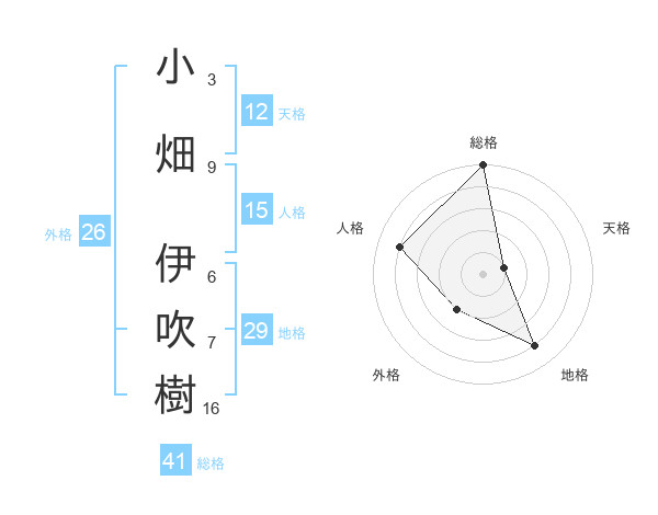 小畑 伊吹樹さんの総格は41画の5点!