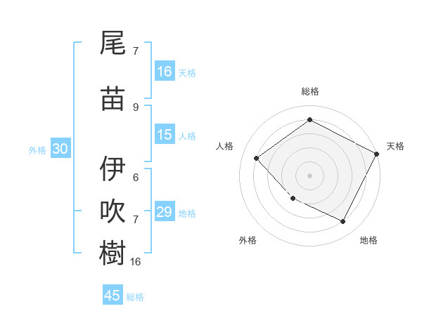 尾苗 伊吹樹さんを姓名の画数から五運を鑑定