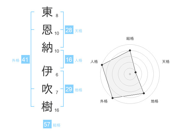 東恩納 伊吹樹さんを姓名の画数から五運を鑑定