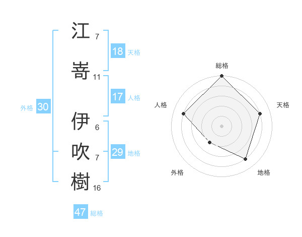 江嵜 伊吹樹さんを姓名の画数から五運を鑑定