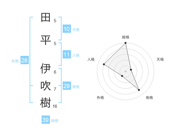 田平 伊吹樹さんを姓名の画数から五運を鑑定
