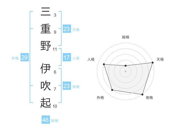 三重野 伊吹起さんを姓名の画数から五運を鑑定