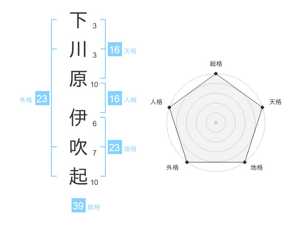 下川原 伊吹起さんを姓名の画数から五運を鑑定